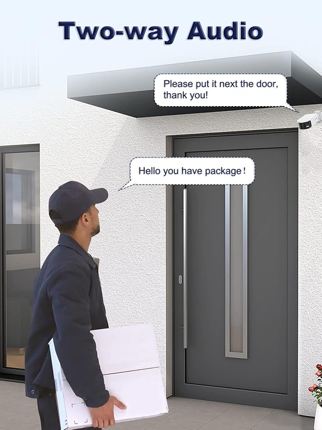 - Two-Way Talk: The 180 degree security camera comes with a built-in speaker and microphone, enabling you to communicate with visitors or potential intruders. You can warn them to leave your property or answer the doorbell remotely from anywhere.