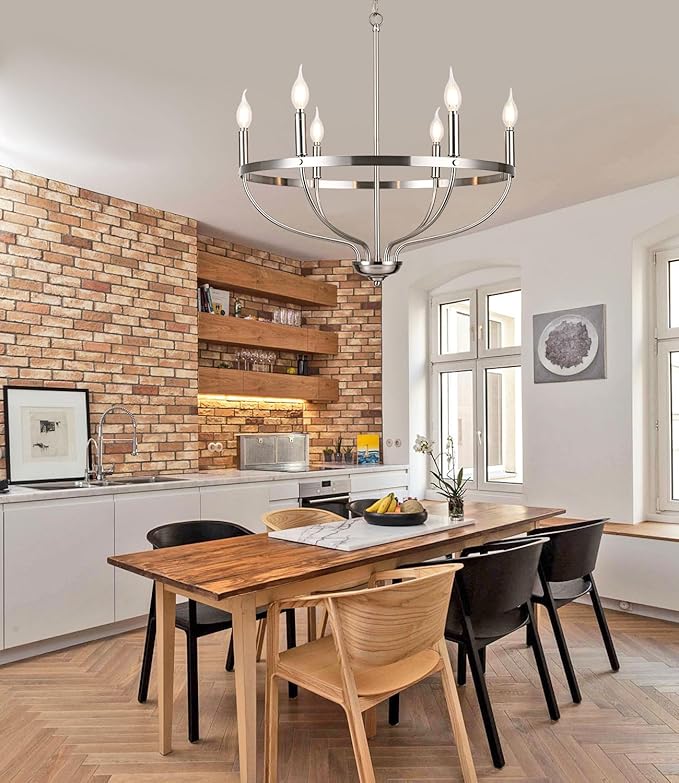 - Modern Candles Chandelier: mid century modern design lighting fixture is crafted of iron in a Brushed Nickel Finishes . Simple and elegant design. Suitable for any interior style: classic, modern, farmhouse