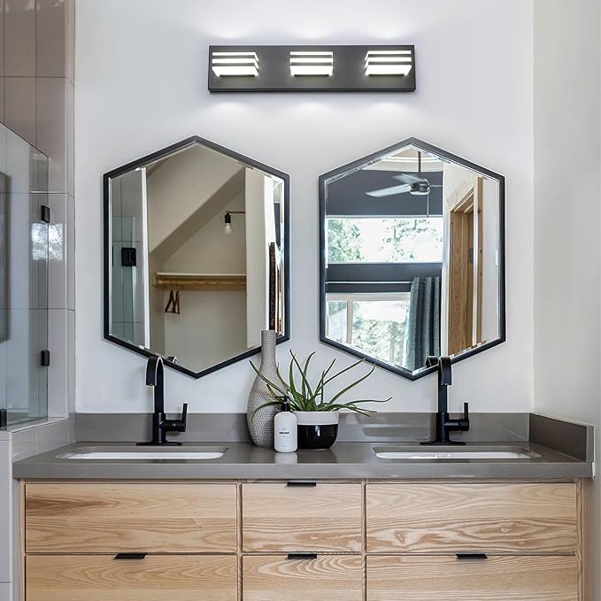 - 4.HIGH-QUALITY & DURABLE: Crafted from premium materials, these black bathroom mirror light over sink are durable and water-resistant, guaranteeing longevity and maintenance-free usage in your bathroom space