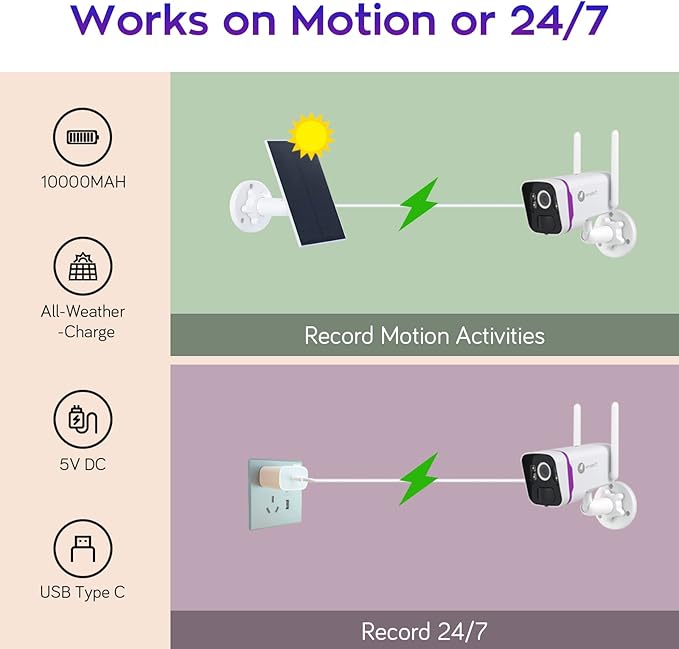 - 【PIR Thermal True Detection】with PIR thermal sensors and humanoid detection, the cameras avoid most false alerts and send App/ email alerts when people, animals or vehicles detected, helping you to take care of your properties and loved ones with ease.