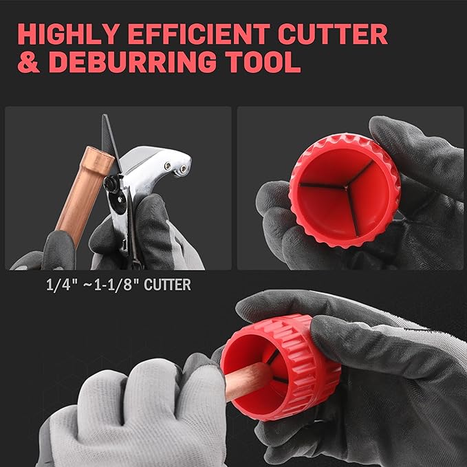 - [Applications and Package]: Designed to handle high-pressure R410A refrigerant, the corrosion-resistant copper flaring tool delivers reliable performance on soft metals and rigid materials. The flare tool kit includes 4 items in total: Silver color gantry x1, Inch-size flaring clamp x1, Silver Tube Cutter x1, Red deburring tool x1