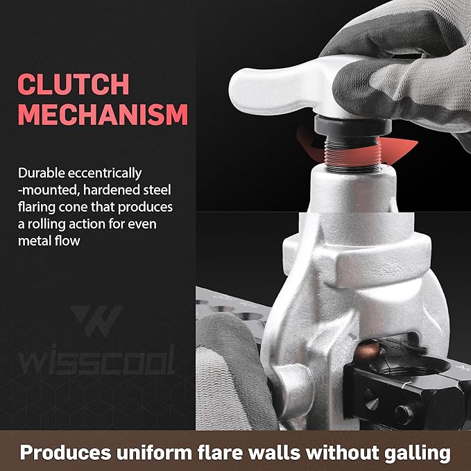 - [Eccentric Cone Design]: The innovative eccentric flaring mechanism reduces friction and prevents tubing distortion, producing smooth, uniform flares in seconds—ideal for copper tubing installations in HVAC repairs or refrigeration projects.