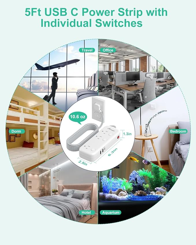 - 【Individual Switches and Surge Protector 980J】Individual switches offer you the flexibility to turn on/off the equipment independently, saving you energy and money,perfect for aquarium, mobile devices, laptop and more.The Surge Protector Power Strip certified by FCC and made of Fire-resistant PC shell, with built-in multiple security module safeguards your electronic devices from overload and short circuit. the reliable overload switch will trip off automatically to protect your devices