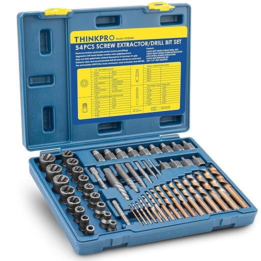 - 【Solid and Reliable】The screw extractor and left hand drill bit set parts are precisely machined, and made of high-hardness chrome-molybdenum steel. Reverse spiral groove design bending down to provide maximum grip force to easily remove broken bolts, nuts, and screws. The drill bits is made of HHS and the head is designed with a 135° angle. which is not easily worn and has strong penetration. Surface titanium nitride coating, effective anti-corrosion and rust prevention, extending service life.