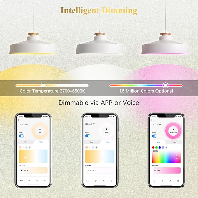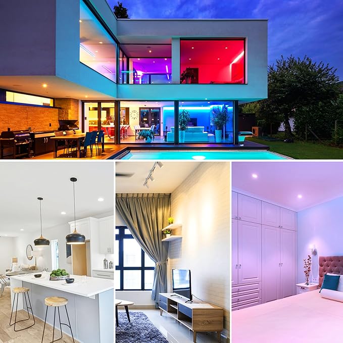 - ☑️Multi-Color Changing & Scene Mode: With a wide range of 16 Million Colors Options and Tunable White from warm white to cool white, you can customize the desired color temperature to match different scene moods or activities, add ambiance to the room, and can also go super bright white when necessary. There are various pre-setup scene modes for your choice via one-tap quickly.