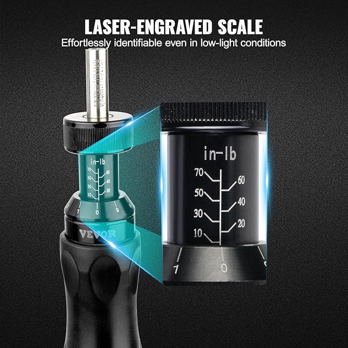 - High Compatibility & Laser Calibration: Our calibrated torque screwdriver offers a torque range of 10-70 in-lbs with 1 in-lbs torque increments, making it suitable for a wide range of screw sizes and enabling precise tightening or loosening of screws. The laser-engraved scale allows for easy reading and operation even in low-light environments.