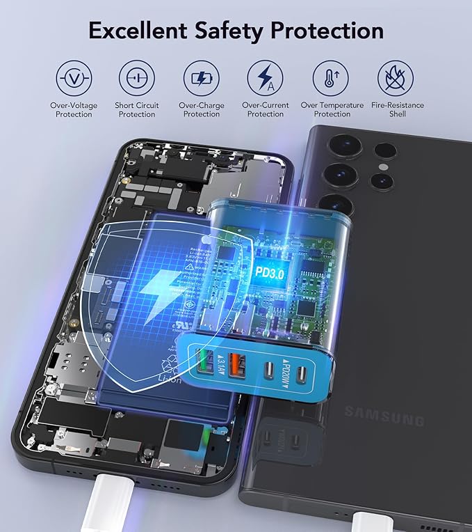 - Universal Compatibility:Due to the special 4-port,the USB charger is compatible with almost all electronic devices,charging adapter for iPhone 16/16 Pro/16 Pro Max/16 Plus/15/15 Pro /15 Pro Max/14/14 Pro/14 Pro Max/13/13 Mini/13 Pro Max/12/12 Pro Max/12 Pro Max/12 Mini/SE 2020/11/11 Pro/11 Pro Max/XR/XS/X/8/7,iPad Air/Pro/Mini,Samsung Galaxy S23/S22/S21/S20/S10/S9/S8/A12/A13/A22/A32/A52/A53/A71/Note 20 10,Tablets,LG,Motorola,Google Pixel and other digital devices compatible