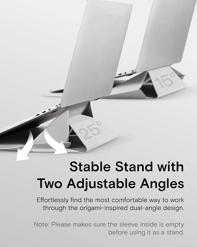 - Two Angles Laptop Sleeve Stand: Instantly convert this sleek Laptop Sleeve into a sturdy Laptop Stand. Features dual-angle adjustment (15° for typing; 25° for viewing) to elevate your screen, reducing neck/wrist strain from poor posture. More than a protective Laptop Bag, this ergonomic Computer Bag works anywhere – transforming your carry sleeve into a pain-relieving workstation.