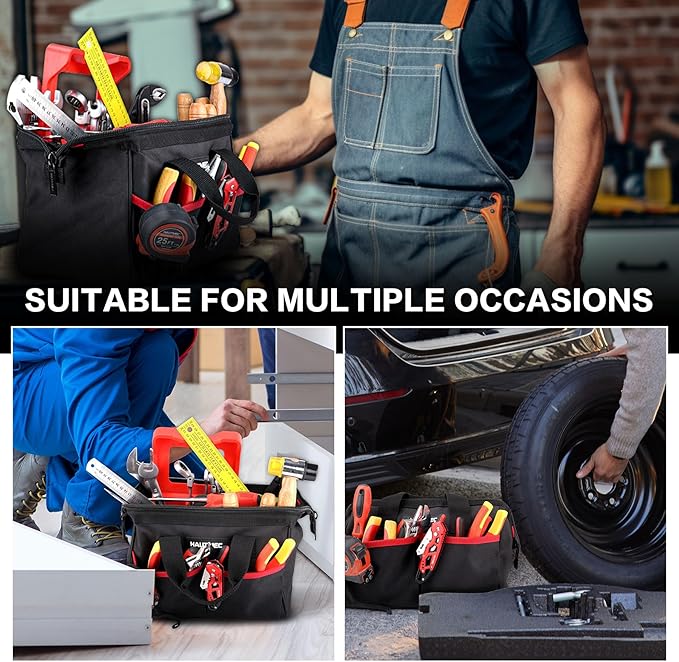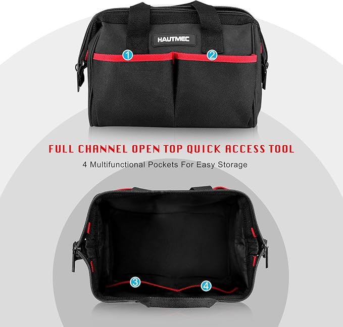- 【Wide Mouth with Metal Frame】The wide opening design supported by a built-in metal frame helps the bag stay open, making it easy to load and quickly find the right tool without hassle