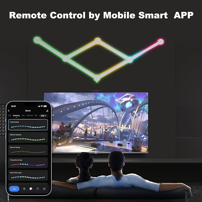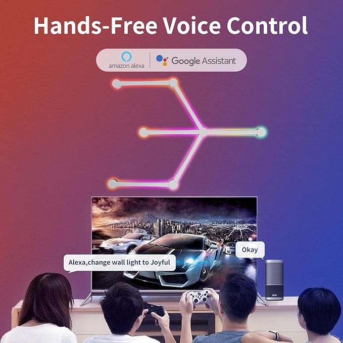- 【 Powerful App and Voice Control 】 The LED wall light can control the light through the remote control, smart app. The Smart life app provides powerful control and customization. Use your voice assistant devices to turn your lights on and off, change scene modes, and more with Smart Voice Control. Pair your Backlit Modular Lighting light bars with Alexa and Google Assistant to enjoy hands-free voice control.