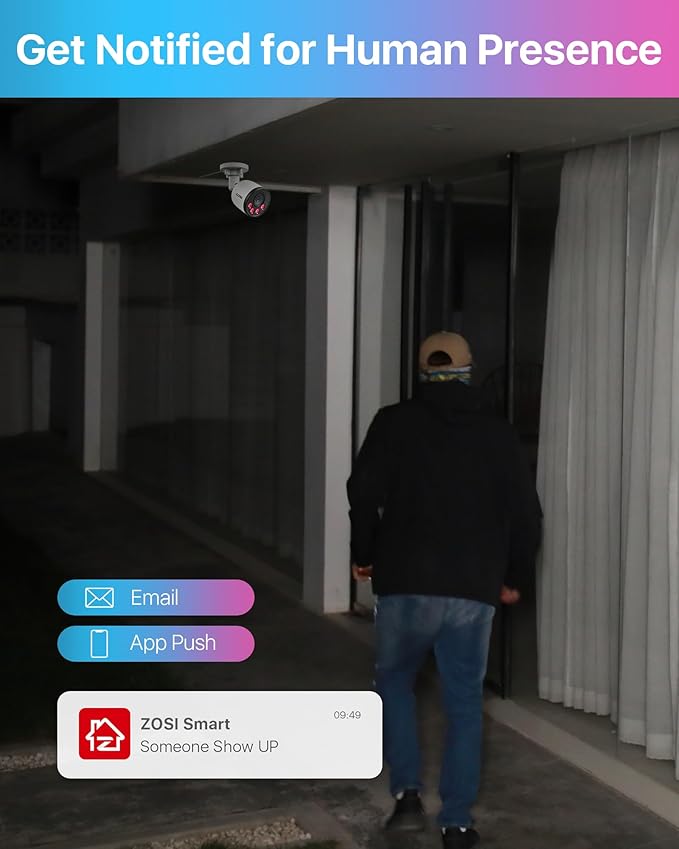 - 【Smart Human Detection & Instant alerts】Customize specific motion detection zones in each camera to minimize false alarms. Receive instant smart notifications and email alerts when human motion is detected.