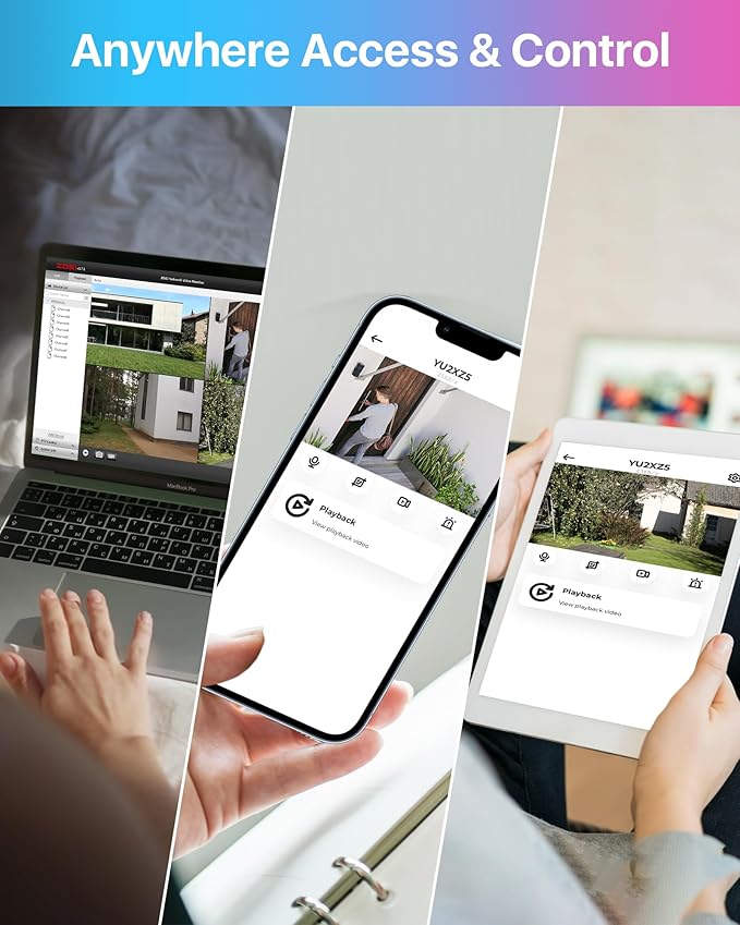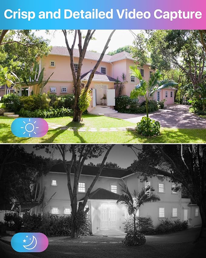 - 【4MP UHD and 100ft Night Vision】Get 4MP Ultra HD real-time video at 25fps, capturing every detail without missing a beat. Enjoy upgraded night vision up to 100ft, ensuring you never miss a moment day or night, you can monitor your home or business with crystal clear clarity.