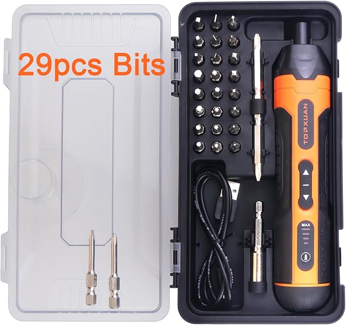 - Multi-functional set-Multi-batch set can be used for daily home work, such as furniture assembly, circuit repair, electrical repair, switch installation, DIY projects, etc. Includes 1 electric screwdriver, 28 screwdriver bits, 1 plus magnetic bit holder, 1 USB charging cable, 1 manual