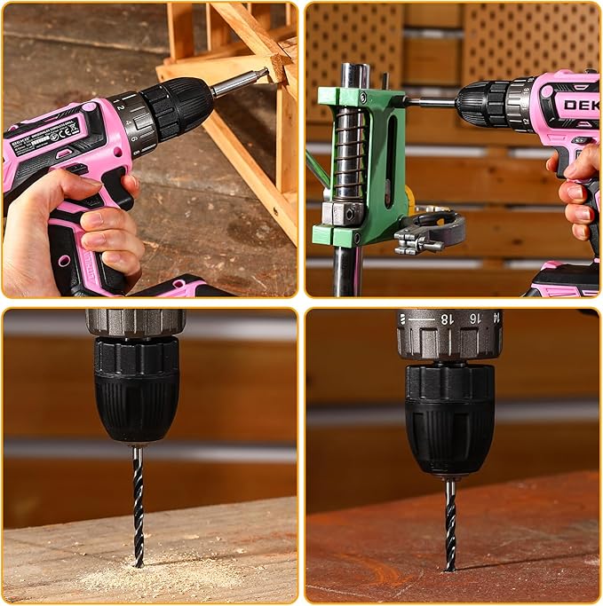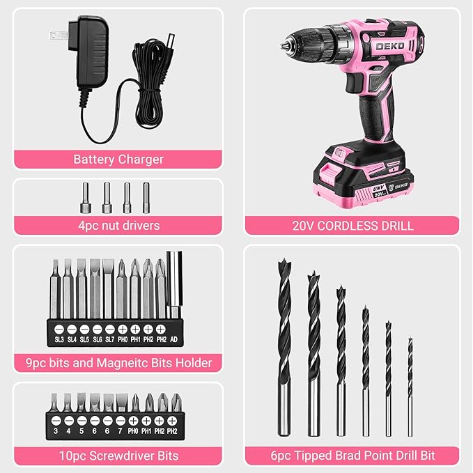 Power Drill Cordless: DEKO PRO Pink Cordless Drill 20V Electric Power Drill Set Tool for Women Drills with Battery and Charger 20 Volt Drills Driver Kit