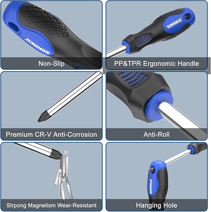 - Handy Design: Designed with an ergonomic non-slip PP+TPR handle for comfort and safety during work. The set includes a magnetic rack for easy organization and storage. Each tool is marked for quick identification, ensuring you find the right tool for the job.