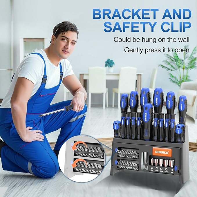 SORAKO 40-Piece Screwdriver Set, Multi-Purpose Magnetic Screwdriver Set with Case, Magnetic Screwdriver Set with Go-Thru Steel Blades | High Torque, Plastic Racking