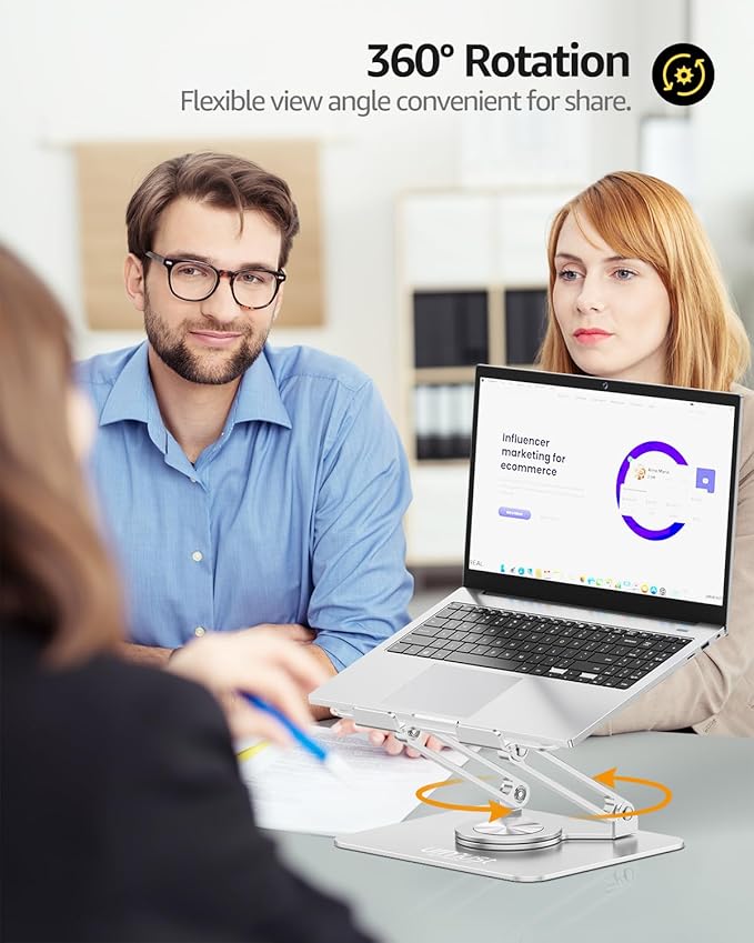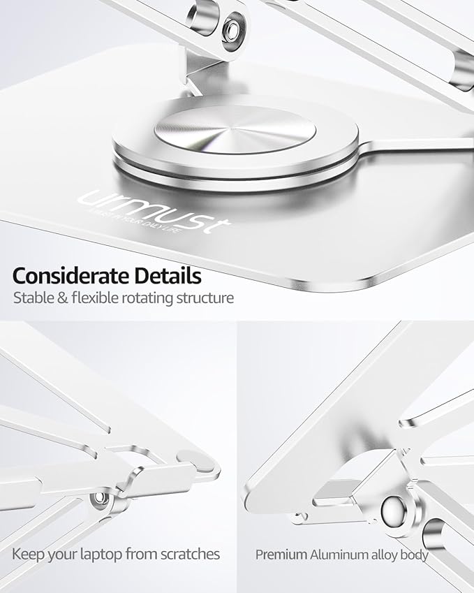 Urmust Laptop Stand for Desk with 360 Rotating Base, Ergonomic Adjustable Laptop Riser for Laptops 10 to 16 Inches