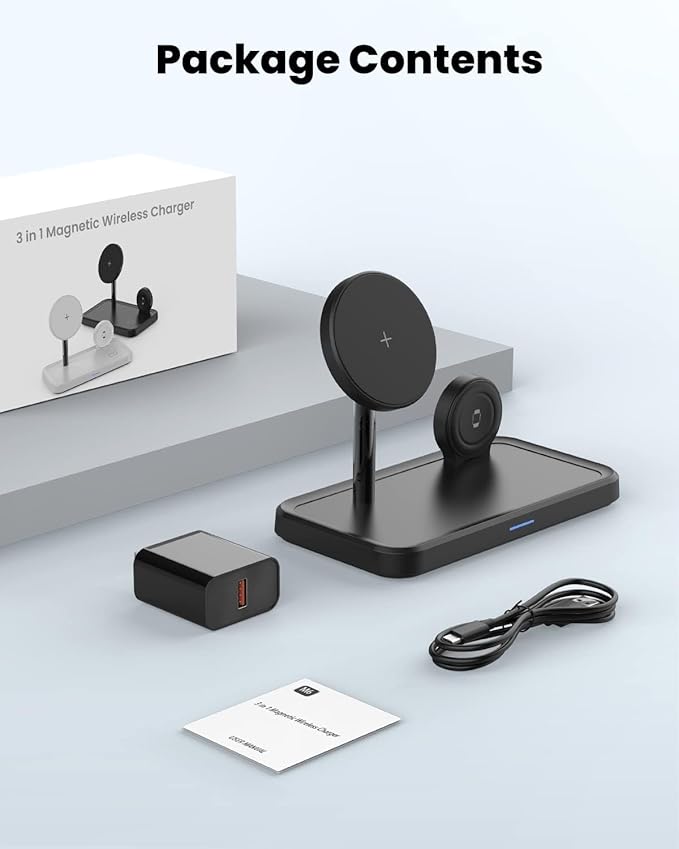 - Streamline Your Charging: Get an all-in-one charging solution for your A-pple devices with our Charging Station! This kit includes a charging station 3 in 1, 18W adapter, 3.3ft type-c charging cable, user manual, and reliable customer service. Feel free to reach out to us with any questions about compatibility with iPhone wireless charger stations for a prompt, helpful response within 12 hours.