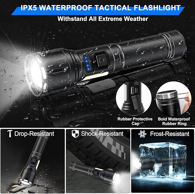 - Special Feature : High Power Long Range LED Flashlight, Super Bright LED Magnetic Flashlight, TYPE-C Rechargeable, 8 Light Modes, Zoomable Adjustable Focus, Weather & Shock Resistant, IPX5 Waterproof, Non Slip Grip High Power Long Range LED Flashlight, Super Bright LED Magnetic Flashlight, TYPE-C Rechargeable, 8 Light Modes, Zoomable Adjustable Focus, Weather & Shock Resistant,… See more