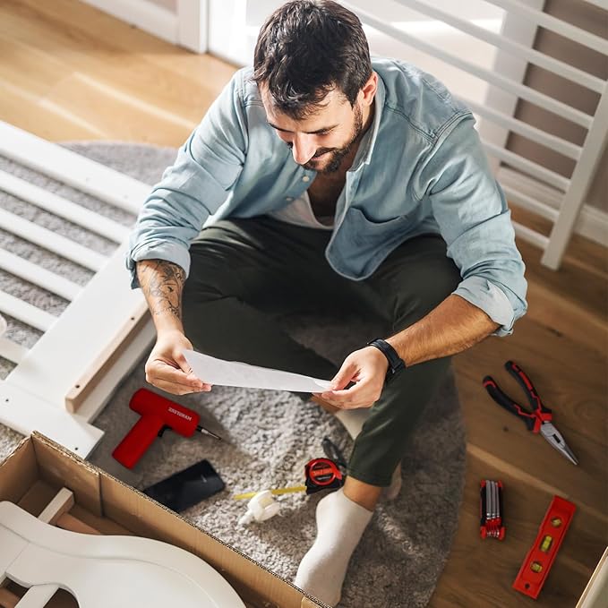 - Powerful and efficient: Screwdriver has LED light, 52pcs accessories includes bits, drill bits, sockets. Max.torque is 5N.m, and No-load speed is 250rpm, Satisfies daily use