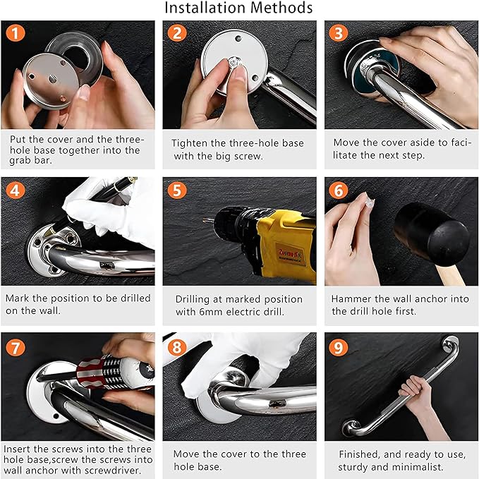 - Easy to Install: You can install the grab bars including screws at anywhere you want with our assembly instructions. It is not only practical but beautiful after you install in your bathroom