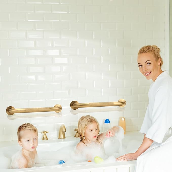 Shower Grab Bar, 2 Pack 16 Inch Gold Bathroom Grab Bar, 1.25" Diameter 304 Stainless Steel Anti-Slip Grab Bars for Bathtubs and Showers, Handicap Shower Grab Bar for Seniors Elderly