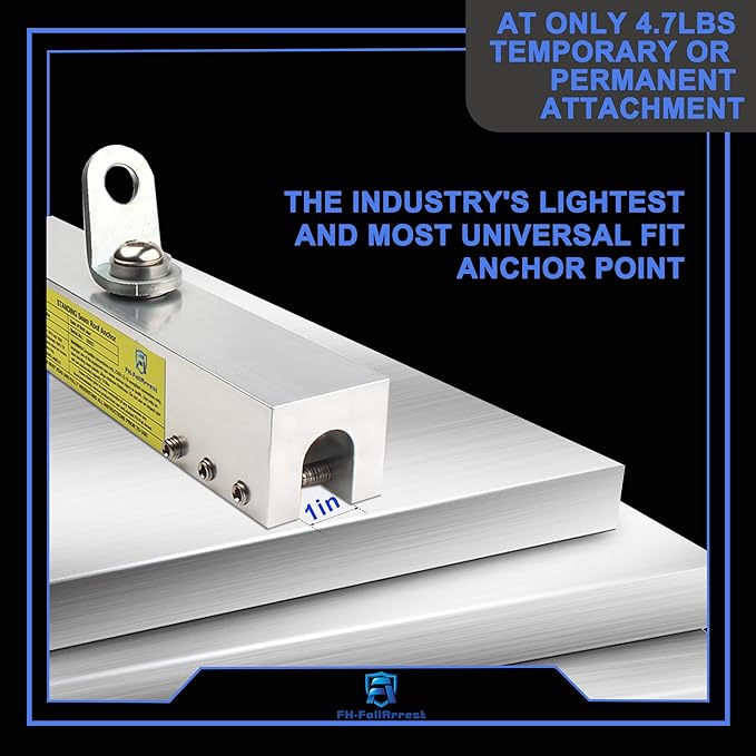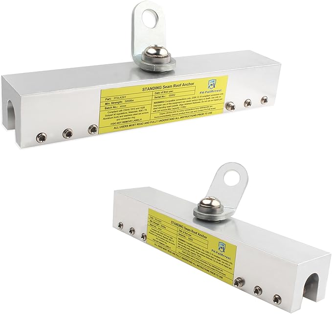 - ๐จโ๐งHIGH QUALITY: The Standing Seam Roof Anchor FFA-AS01 is designed to attach to standing seam roof panels ONLY. When used properly, it will arrest falls and can be used as a single seam-single user device or as a component system. Construction consists of a solid aluminum anchor body to be attached with 12 stainless steel set screws. No other types of set screws may be used with this device. ANSI compliant ring. Minimum Breaking Strength: 5,000 lbs. User Maximum Capacity: 130-310 lbs.