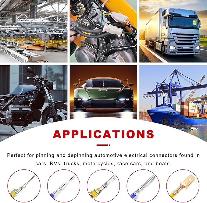 - 【Complete Automotive Wiring Kit】: Perfect for pinning and depinning automotive electrical connectors found in cars, RVs, trucks, motorcycles, race cars, and boats