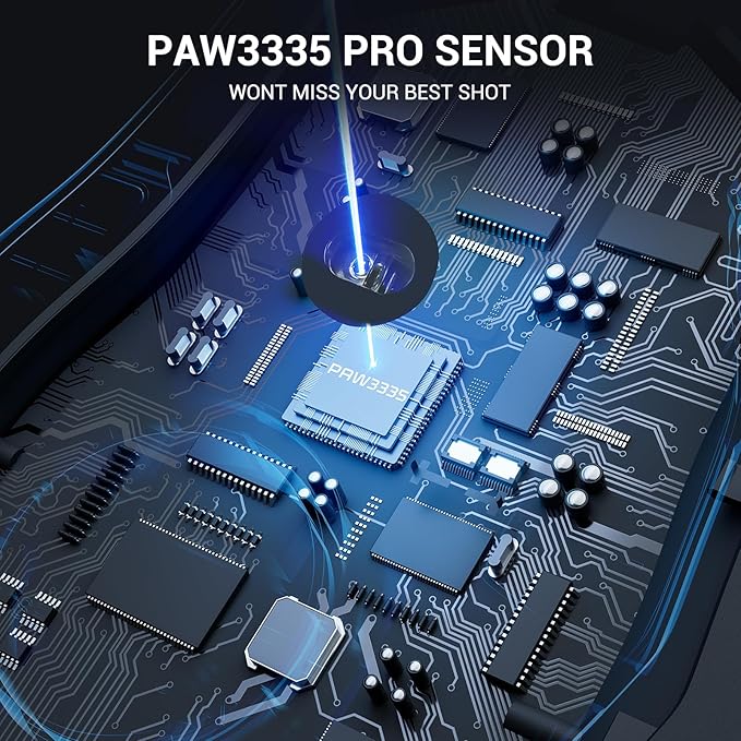 - E-SPORTS SENSOR: Equipped with the PAW3335 Optical Pixart sensor, the mouse consumption is further optimized with a 1000Hz Polling Rate in dual mode. A durable rechargeable battery keeps the mouse working for up to 170 hours at maximum (eco-mode)