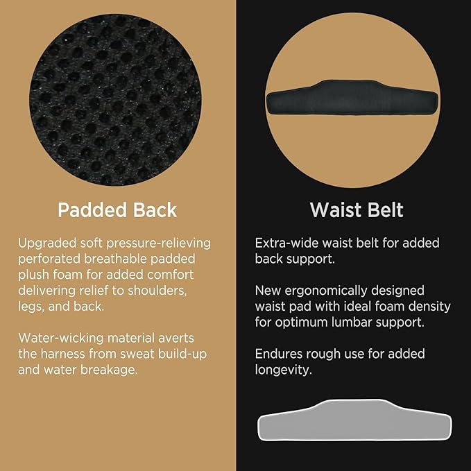 - COMFORT: Upgraded soft pressure‑relieving perforated breathable padded plush foam for added comfort delivering relief to shoulders, legs, and back. New specially formulated webbing flexes to accommodate movement and body contours for optimum comfort around legs & shoulders. Water‑wicking material averts the safety harness from sweat build-up and water breakage—essential for long days using a fall protection harness.