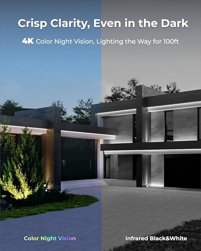 - [Up to 100ft Color Night Vision In 4k Clarity] -Featuring an advanced lens, Reolink security cameras provide exceptional vision in the dark. All nighttime details are vividly captured in 4K clarity and vibrant colors, ensuring that no hidden threat goes unnoticed.