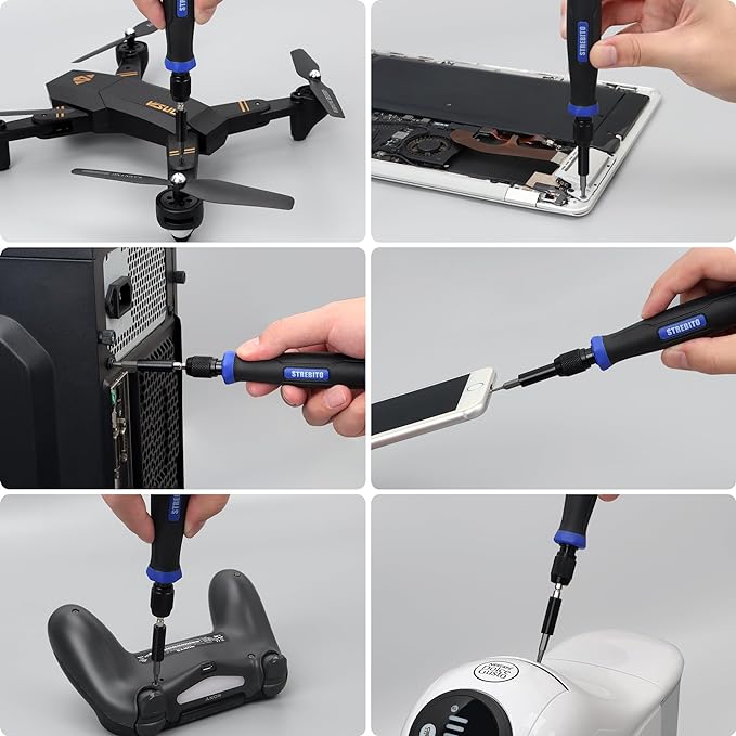 - 【Wider Application】The STREBITO Precision Screwdriver Set is professionally designed for electronic repair. With 140 precision bits - Phillips, Pentalobe, Torx Security, Star, SAE/Metric Hex, JIS, Flat Head, Triwing, Triangle, Square and more, this screwdriver kit is versatile to meet your different daily use, such as PC, Computer, Laptop, Cell Phone, Macbook, RC Car, Drone, Nintendo switch, PS4 Controller Console, Watch, Eyeglass, Coffee Machine, Ring Doorbell, and other IT tech devices