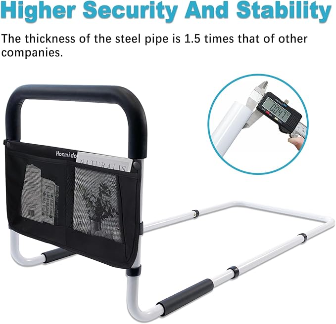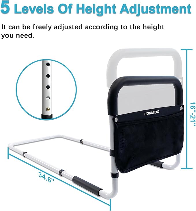 - 【Tools free & Portable】It can be installed in one minutes. A free storage bag is to help users organize personal items. Portable bed rails allow you to take it wherever you are and support your daily use. Good home health care products for seniors.