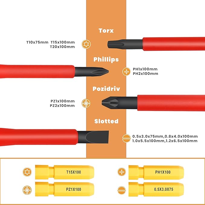 - Safety First: Each insulated screwdriver set is 1000V insulated, providing an extra layer of safety for electricians and professionals working with live electrical circuits.