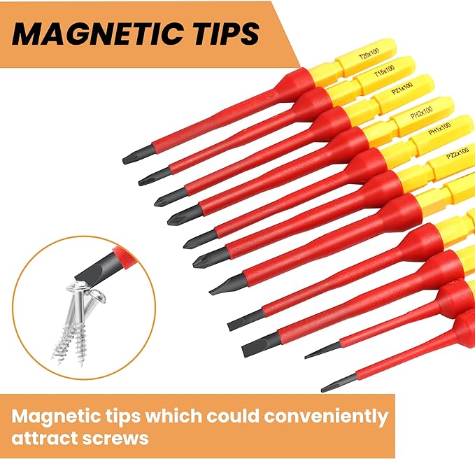 - Magnetic Tips: The electrician screwdriver comes with magnetic tips, allowing for efficient handling of screws and preventing them from dropping during use.
