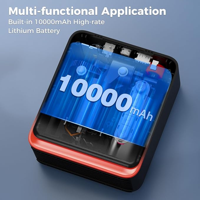 - ๐๐จ๐ซ๐ญ๐๐๐ฅ๐ ๐๐ข๐ซ ๐๐ฎ๐ฆ๐ฉ ๐๐จ๐ซ ๐๐๐ซ ๐๐ข๐ซ๐๐ฌ ๐ฐ๐ข๐ญ๐ก ๐ ๐๐ฎ๐ ๐ ๐๐ซ๐๐ฌ๐ฌ๐ฎ๐ซ๐๏ผ Comes in a stylish gift box with a storage bag, accessories, and manual. It features USB-C and USB-A ports, along with a DC input port, with the USB-C port supporting reverse charging. The air pump can be used as a power bank and flashlight. It's the perfect gift for Father's Day, Christmas, or New Year, providing convenience and utility for your loved ones.