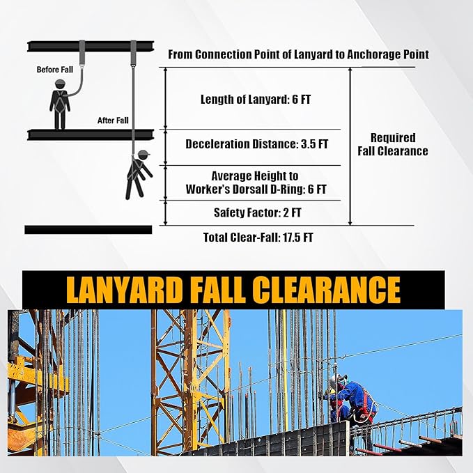 - SAFE: The fall protection lanyard is designed with safety in mind.Safety lanyard has a lightweight yet heavy-duty outer polyester webbing that is strong and durable that made of 100% polyester Heavy Duty construction materials provides maximum security. It also has a specially sewn polyester core that reduces impact forces. Additionally, it features two heavy-duty that provide secure fastening.