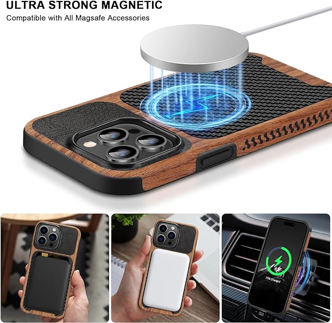 - Designed for iPhone 15 Pro Max cases: One-piece case consists of wood veneer, carbon fiber texture leather and TPU; 3 materials are synthesized; Carbon fiber texture leather and wood grain on the back and shock absorbent TPU rubber inside