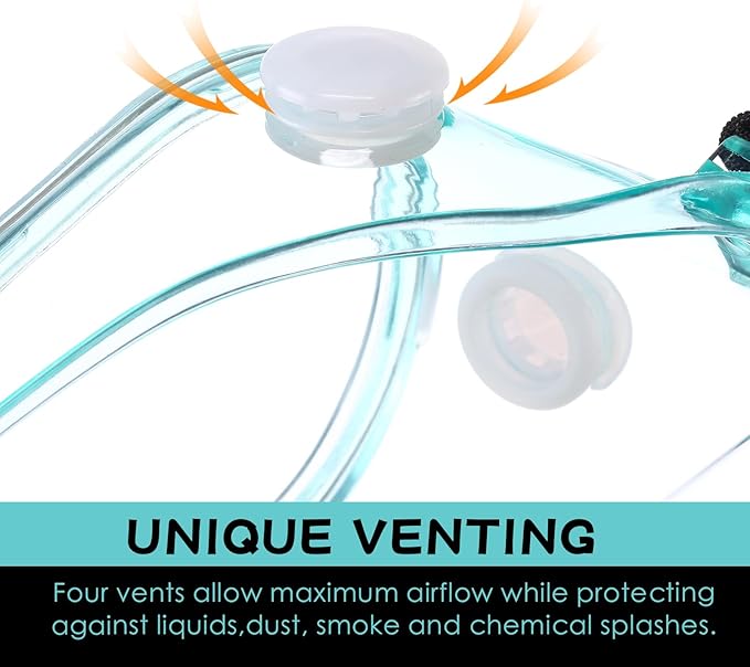 - Anti Fog and Ventilated: the lenses of eye protection goggles provide a clear and transparent visual effect, no dead angle, wide field of vision; 4 Vents allow maximum airflow while protecting eyes against liquids, some airborne particulates and dust