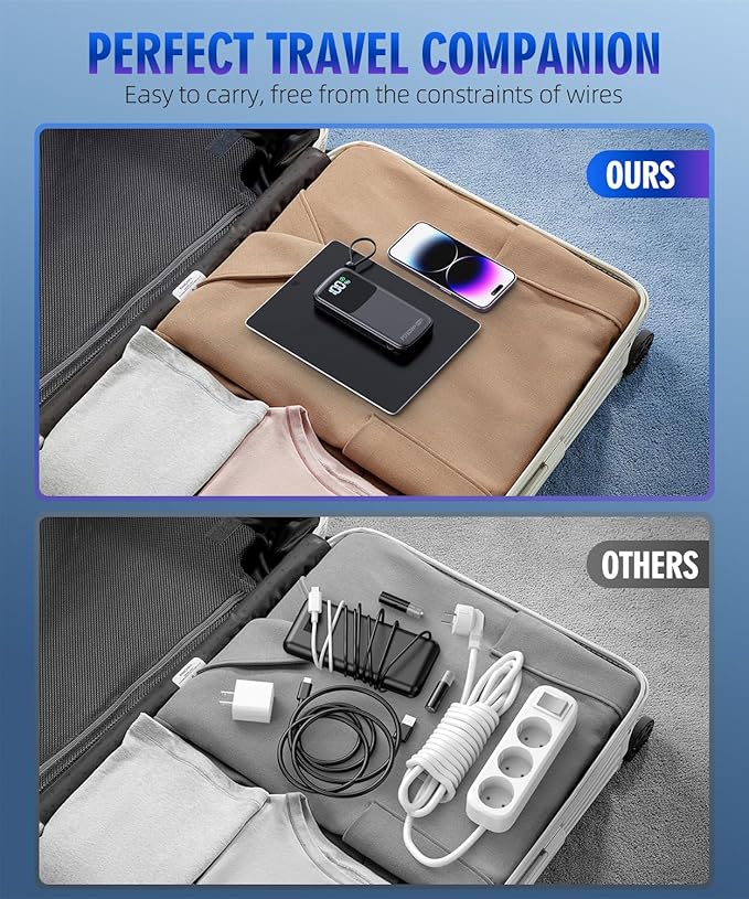 - Portable charger power bank built-in charging cables that are compatible with iPhone, Android devices, and most devices on the market. Portable charger can meet most of the charging needs in our daily life.
