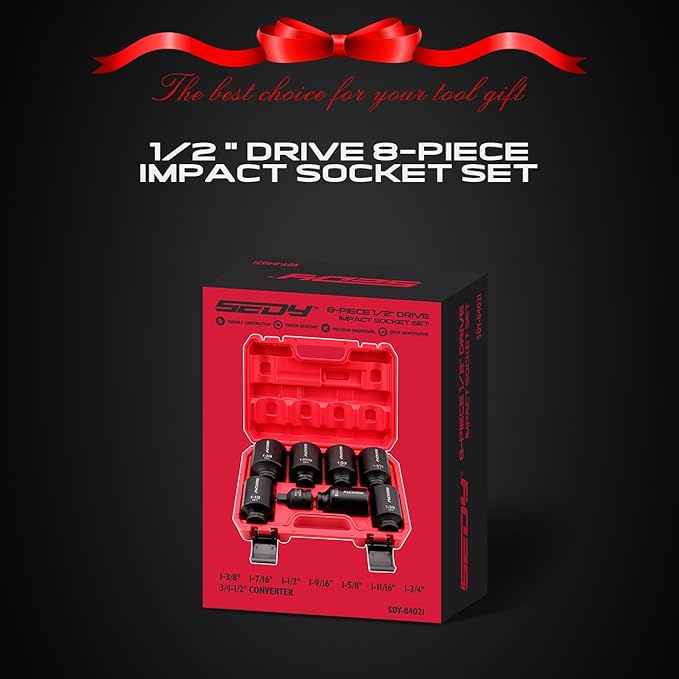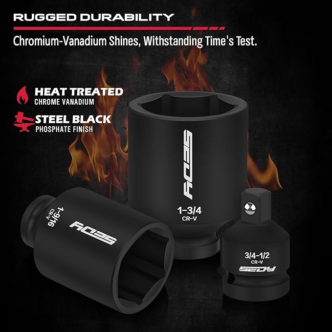 - DURABLE CONSTRUCTION - Premium chrome molybdenum steel construction with a protective black phosphate finish ensures these impact socket set 1/2 deep drive inch sockets are durable, ideal for axle nut wrench needs.