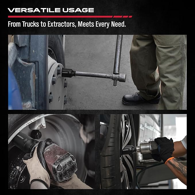 - VERSATILE USAGE - From standard to jumbo sizes, this impact socket set is ideal for a wide variety of applications, including torque bearing and truck maintenance, big extractor work, and more.