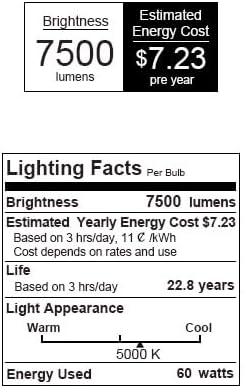 - BRIGHT & ENERGY SAVING: ETL Certified! SANSI's LED Garage light uses 112pcs high light efficiency LED chips to provide 6500LM brightness using only 60 watts of power, equivalent to 600W incandescent bulbs. Based on 3 hours per day usage, save up to 90% electricity, the annual estimated 7.2. 5000K color will be more eyes-friendly than 6000K cool white