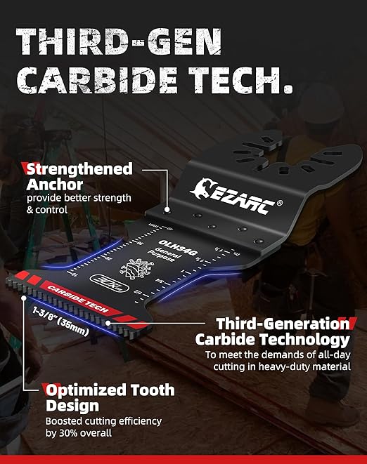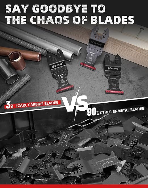 - 【General Purpose Expert】New-gen carbide technology coupled with a unique tooth desgin, the EZARC General Purpose Oscillating Multi-Tool Blades offer ultimate cutting experience. They ensure rapid cutting and extended durability on the jobsite