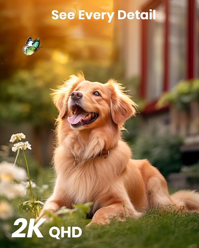 - 360-Degree Coverage & 2K Crisp Image - This solar security camera with Panoramic PTZ can rotate to wherever you tap on the 360-degree panorama, allowing you to quickly check every corner and ensure full protection for your home.Features in upgraded real 2K resolution to capture crisp details day and night.