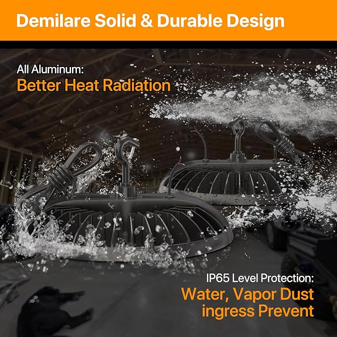 - High Brightness Output: The DEMILARE 200W High Bay LED Shop Lights deliver an impressive 30,000 lumens of bright daylight white light (5000K), ensuring your workspace is brilliantly illuminated for all tasks, making them the ideal choice for any environment needing high bay lights.