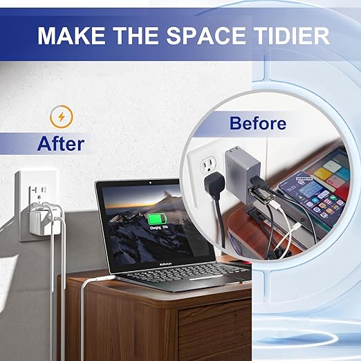 - 【Ultimate USB Receptacle】Experience unrivaled charging with a single device capable of delivering a blazing 65W max charge, enabling lightning-fast charging for your 2021 MacBook Pro 13" at full speed! Amerisense GaN 65W USB outlet ensures rapid charging for your USB-C laptop, phone, and tablet. Bid farewell to your outdated receptacle! (Note: When utilizing both the USB-C and USB-A ports simultaneously, the USB-C port will provide a maximum charge of 45W.)