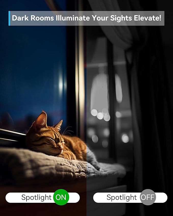 - 2K Resolution & Color/IR Night Vision: Never out of sight, no matter day or night! With 2K high resolution, the indoor camera ensures crystal clear picture quality. Equipped with 6pcs 850nm infrared LED beads, the indoor camera can capture every detail even in complete darkness. When motion is detected, the light above the lens automatically turns on, allowing you to see daytime colors even in the nighttime. Enjoy round-the-clock surveillance with the indoor camera, sunup to sundown!