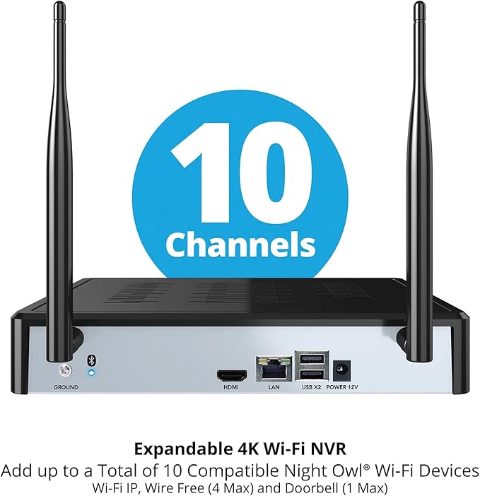 Night Owl 10 Channel Bluetooth Video Home Security Camera System with (8) Plug-in Wi-Fi 2K HD Indoor/Outdoor Spotlight Cameras with 2-Way Audio and 1TB Hard Drive (Expandable up to 10 Cameras)