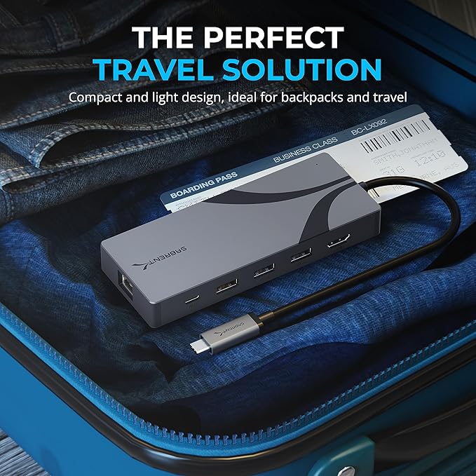 - USB-C Travel Hub: Your essential USB-C travel hub is here. The Sabrent USB-C 6-Port Hub with M.2 SSD Slot (HB-6PNV) has everything you need beneath its sleek but rugged aluminum exterior. This includes USB ports, power delivery, fast networking, and even a M.2 slot for more storage on the go! Perfect for your MacBook or laptop.